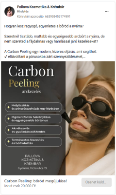 *A hirdetések a következő célok esetén a leghatékonyabbak: kedvezmény vagy akció hirdetése, szolgáltatás vagy csomag hirdetése, ajándékutalvány vásárlás ösztönzése, a szalon népszerűsítése, nyílt napok hirdetése, szezonáis promóciók, képzések és oktatások hirdetése, exkluzív ajánlatok.